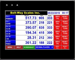The 4" or 7" touch screen display allows viewing of multiple scales at the same time (1-2 scales on 4" and 1-6 scales on 7"). The operator can reset scale totals and perform zero calibrations remotely. Historical data is stored on an internal USB flash drive